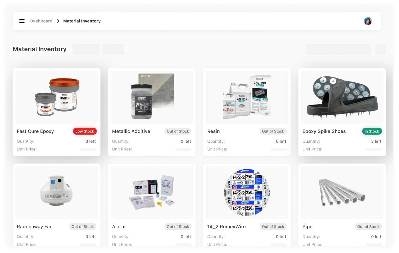 Take control of your physical assets. Manage stock levels, automate purchase orders, organize vendors, and track every piece of equipment from the warehouse to the worksite.